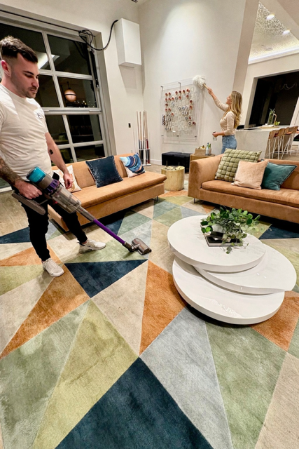 Furniture (dust & polish), Blinds (dust), Mirrors, Cobwebs (remove), Carpets (vacuum), Ceiling Fans (dust), Baseboards (wipe down)
